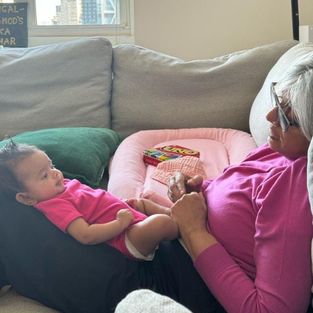 I am Ammoma now, that’s grandmom in Malayalam. It still feels fresh, like the new name tag I’m becoming accustomed to. But here’s the thing: In her entire five months of life on this earth, I have had three whole months with Lyla, my granddaughter. Not all at once, but in little chunks of time that feel like small gifts. And I’ll tell you something – those months have rewritten something deep within me.
